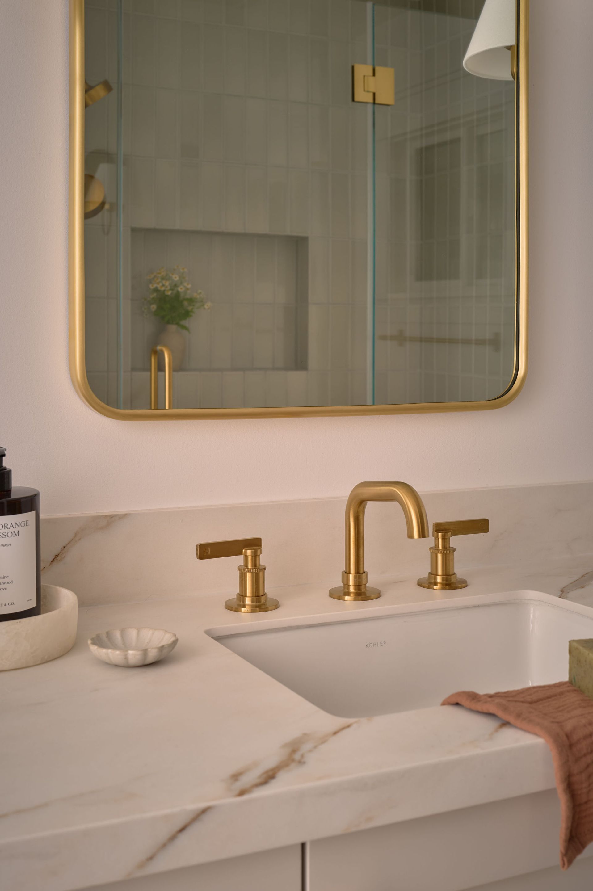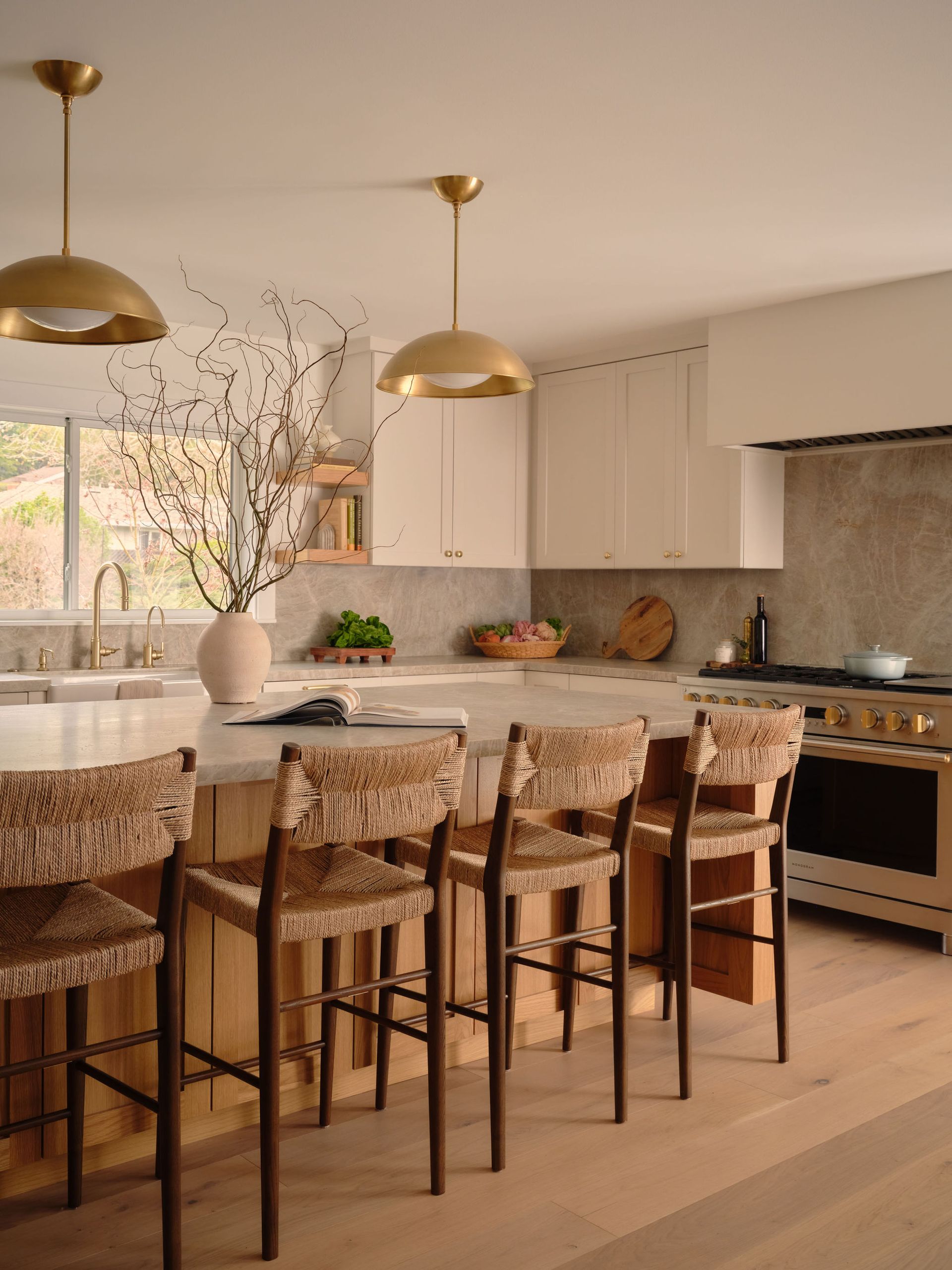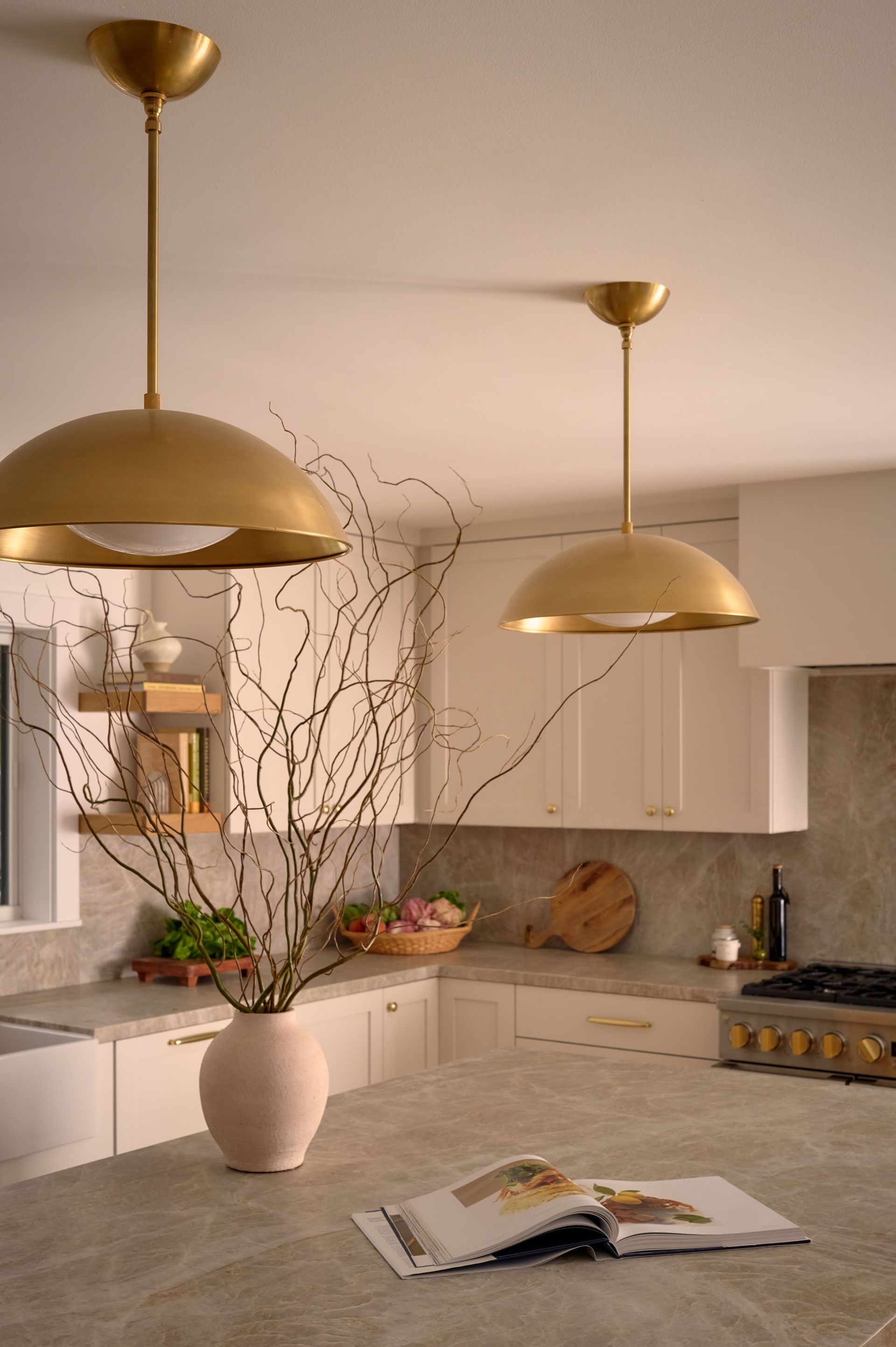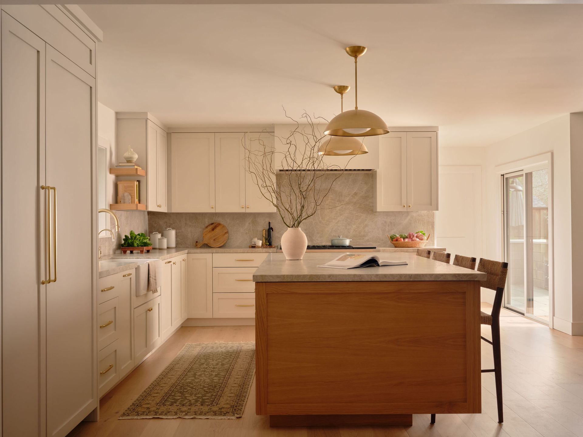 This Lafayette remodel reimagined the home’s core spaces to better support everyday family life, with a focus on both functionality and warmth. The kitchen was opened up around a generous island, creating a natural gathering place while introducing abundant, well-integrated storage through custom cabinetry and built-in shelving. Throughout the home, thoughtful details—like layered brass accents, soft neutral finishes, and tailored millwork—carry a sense of cohesion from kitchen to bath.